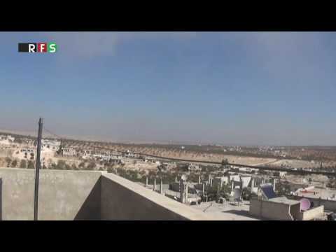 لحظة انفجار صواريخ محمولة على مظلات القتها طائرات روسية على بلدة حاس بري...